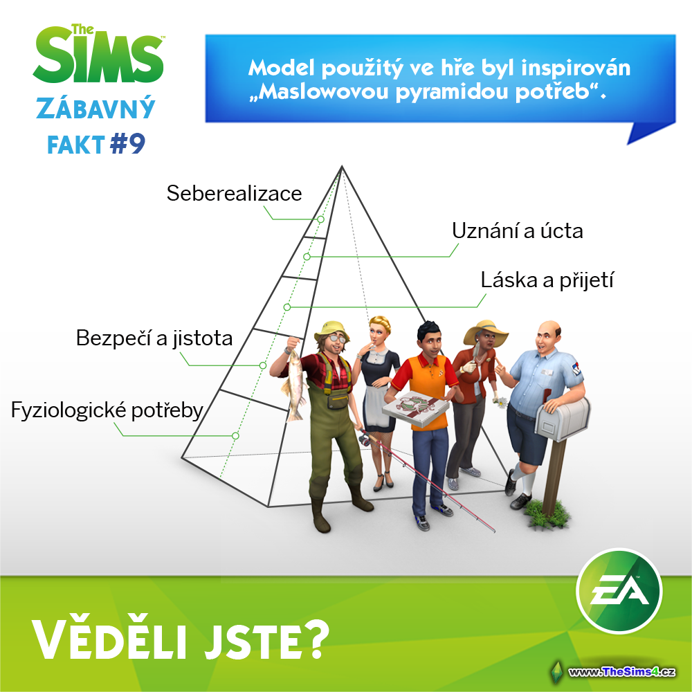9. Pyramida potřeb Publikováno: 1.3.2015 | Velikost: 1000 × 1000 | Přiřazeno: Zábavné fakty 9. Pyramida potřeb Koupit The Sims 4 Koupit rozšíření The Sims 4: Psi a kočky Koupit rozšíření The Sims 4: Život ve městě Koupit rozšíření The Sims 4: Společná zábava Koupit rozšíření The Sims 4: Hurá do práce Koupit rozšíření The Sims 4: Cesta ke slávě Koupit The Sims 4 Sadu (Návštěva v lázních, Perfektní patio a Přepychový večírek) Koupit The Sims 4 Sadu II (Únik do přírody, Báječná kuchyně a Strašidelné věcičky) Koupit The Sims 4 Sadu III (Jdeme se najíst, Domácí kino a Romantická zahrada) Koupit The Sims 4 Sadu IV (Upíři, Dětský pokoj a Zahrada za domem) Koupit The Sims 4 Sadu V (Rodičovství, Staré časy a Bowlingový večer)